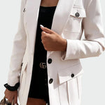 Sakoo z izpolnjenim dizajnom, ki prinaša dinamičen in moderen stil. Ima klasičen ovratnik, gumbe na sprednji strani in praktične žepe s pokrovom. Idealno za poslovne nastope, pa tudi bolj sproščene kombinacije, ki prinašajo prefinjenost in eleganco ob vsaki priložnosti.