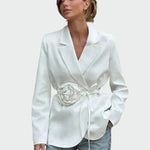 Romantičen in eleganten sakot, ki izstopa zahvaljujoč pasu-rozam, kar dodaja ženskost in brezčasni stil. Tailored kroj poudari silhueto, medtem ko podrobnosti sakota uporabljajo, da je idealen za posebne priložnosti v elegantnem videzu. Odlično se kombinira s krilom ali hlačami za videz, ki pritegne pogled.