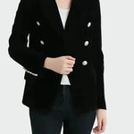 Eleganten sakot v brezčasni liniji z dvojnim zapenjanjem, ki poudari silhueto. Njegova struktura ponuja profesionalen in izpopolnjen značaj, hkrati pa ga je mogoče zlahka nositi tako v vsakodnevnih kot večernih priložnostih. Minimalistična zasnova ga postavlja kot osnovni kos v vsaki garderobi.