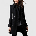 Preobrazite svoj stil z elegantnim plaščem Koralynne, popolno združitev klasične elegance v sodobno šiko, ki jo vsaka ženska potrebuje v svojem omari.