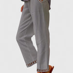 Vstopite v brezskrbni sodobni slog s temi elegantnimi hlačami s kontrastnimi robovi. Zasnovane za združevanje udobja s sofisticiranostjo, tako popolna nadgradnja vaše vsakodnevne garderobe — ne glede na to, ali se odpravljate na brunch ali v sejni sobi.