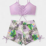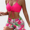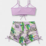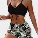Ta dvodelni bikini izstopa s svojimi tropskimi vzorci in modernim V-izrezom, ki prinaša svežino in dinamiko vašemu poletnemu slogu. Boksarice z visokim pasom v kombinaciji s tankimi naramnicami ustvarjajo laskav in varen fit.