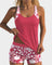 • Cvetlični vzorec: Kratke hlače in podrobnosti na ramenih vsebujejo dekorativne vzorce za dekliški videz.