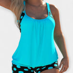 Ta tankini komplet združuje retro čar s sodobnim udobjem, ki ponuja ženskost in praktičnost na plaži ali ob bazenu. Oblikovanje s pikami dodaja igrivo eleganco, medtem ko kroj nežno objame telo za samozavest in stil.