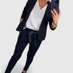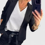 • Stilna Blazna: Ima mehak, silhueto poudarjajoč kroj, ki prilega vsaki postavi.