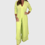 Brezskrbna Slog: Dolga bluzica dodaja sofisticiranost, medtem ko zračne hlače ponujajo največjo svobodo gibanja.