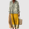 Ta igriva maksijska obleka se ponaša z drznimi vzorci črnih pik na vrhu, v kombinaciji s toplimi barvnimi ploščami v zlati rumeni, bež in kremni barvi. Z sproščenim krojem, mehkim V-izrezom in dolgimi rokavi je to izstopajoč kos, ki združuje veselje in udobje.