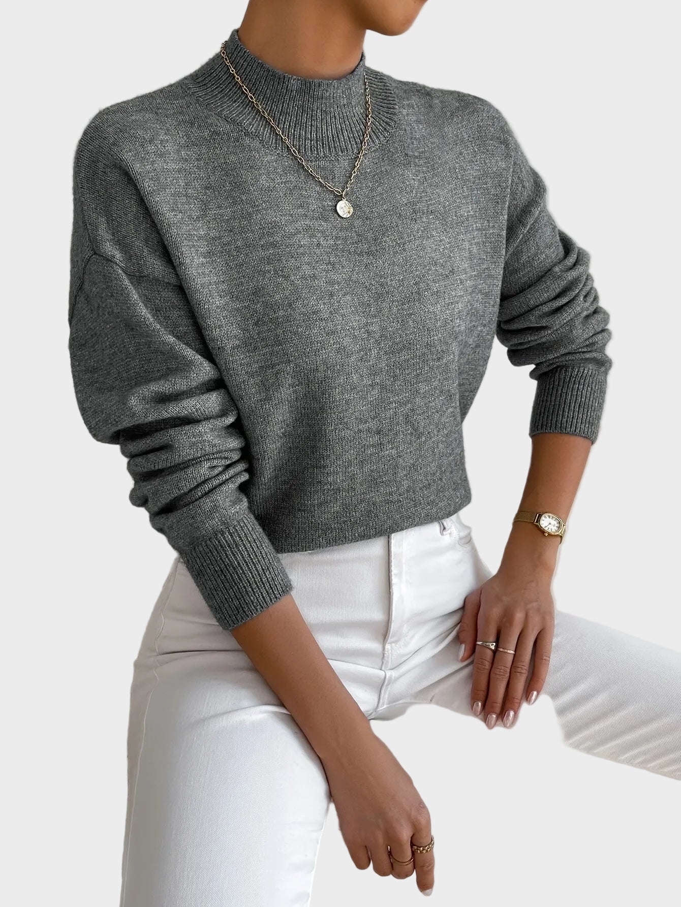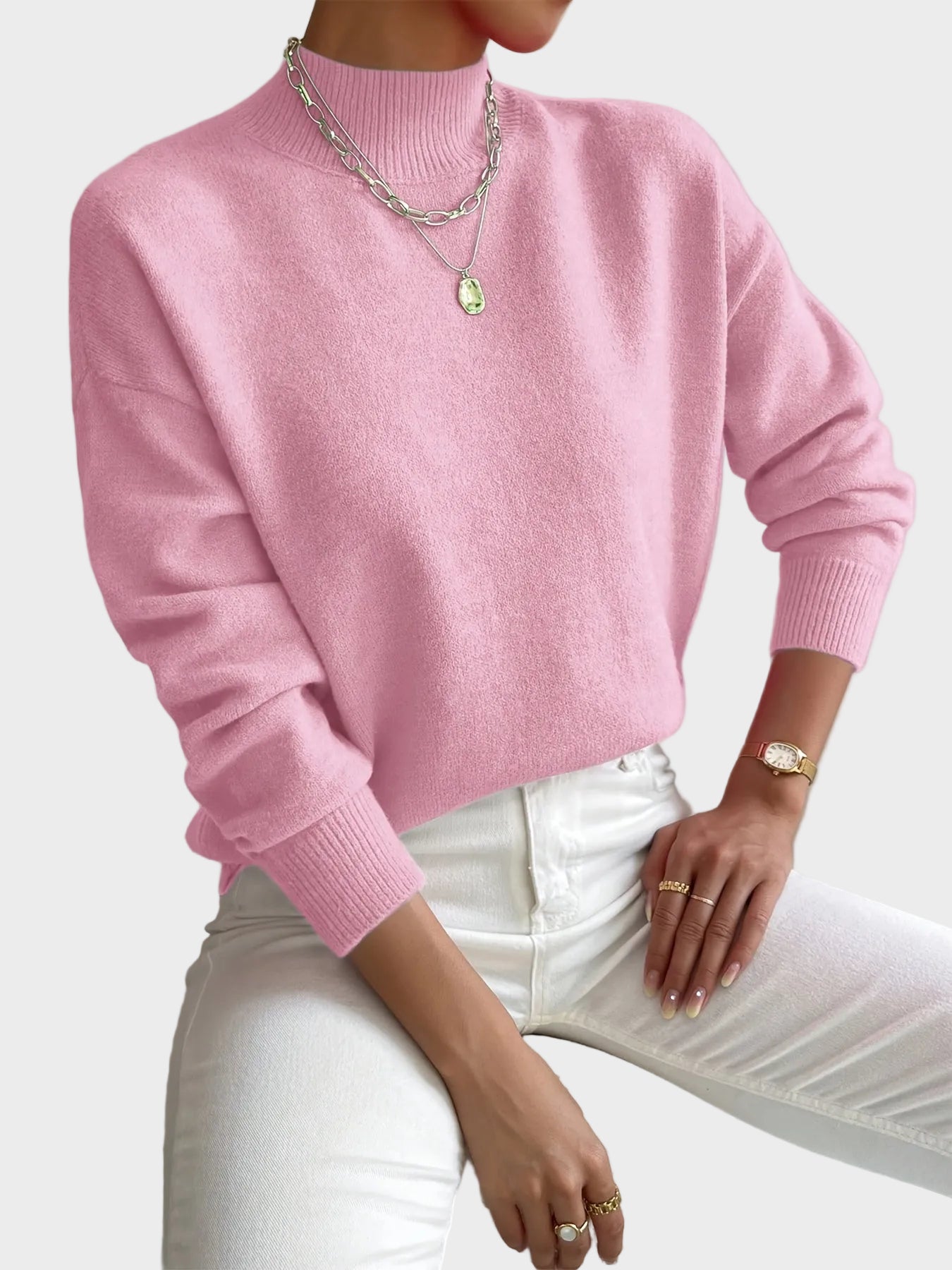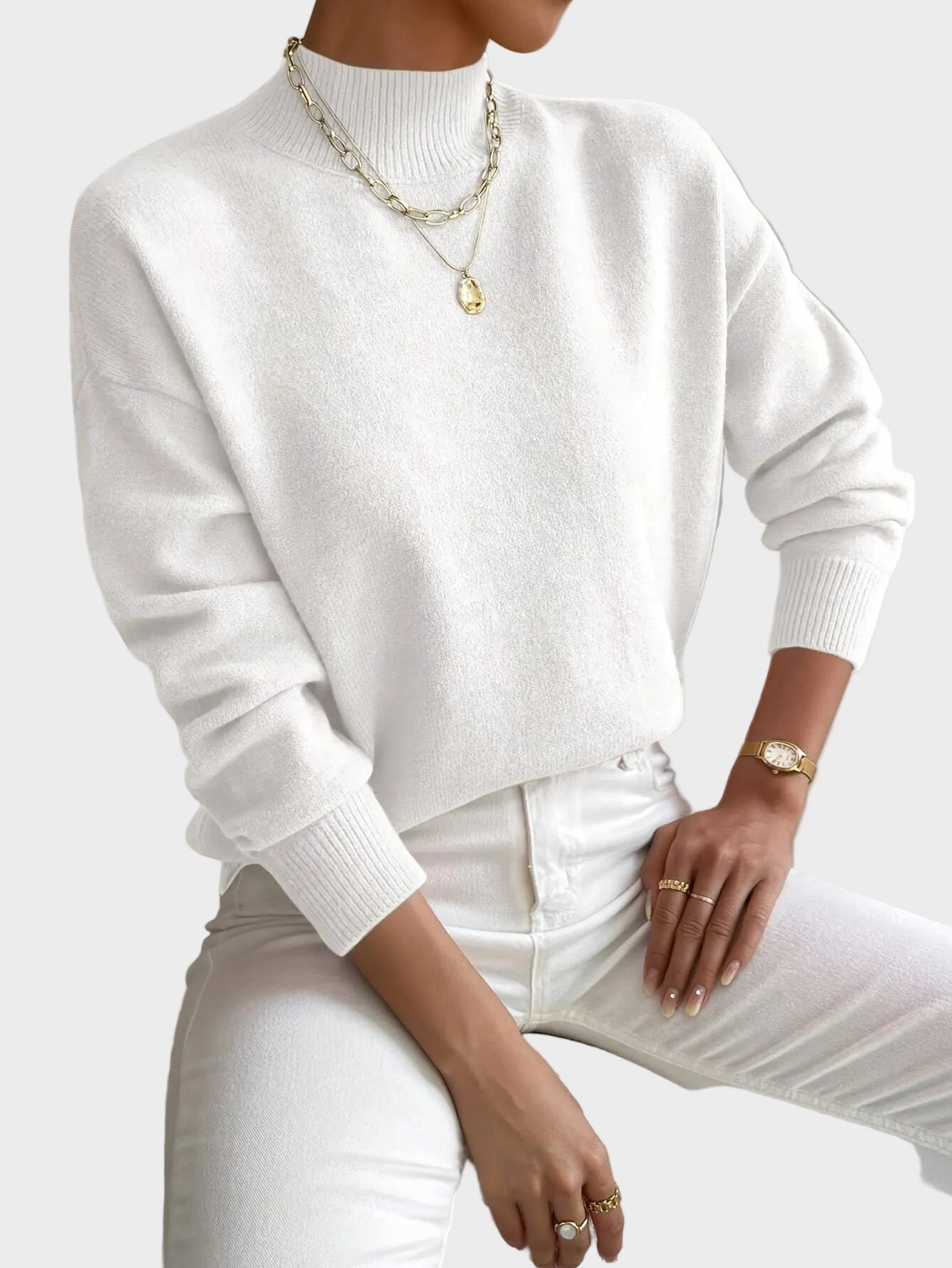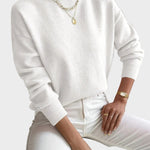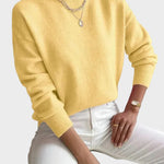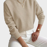 Pulover Haven je zasnovan za popolno ravnovesje med udobjem, eleganco in vsakodnevnim stilom. Izjemno mehak material prijetno objame telo, medtem ko minimalističen dizajn z rahlo dvignjenim ovratnikom ustvarja čist in moderen videz. Idealen kos za sproščene dni ali urejene kombinacije brez napora.