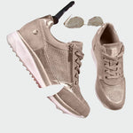 Par športnih čevljev z ortopedskim dizajnom, ki združujejo udobje in klasičen stil. Mehka podplata nudi podporo in prijeten občutek, medtem ko lahka konstrukcija omogoča idealno uporabo za vsakodnevne priložnosti. Časovno neomejen kos, ki dopolnjuje vsak videz s praktičnostjo in eleganco.