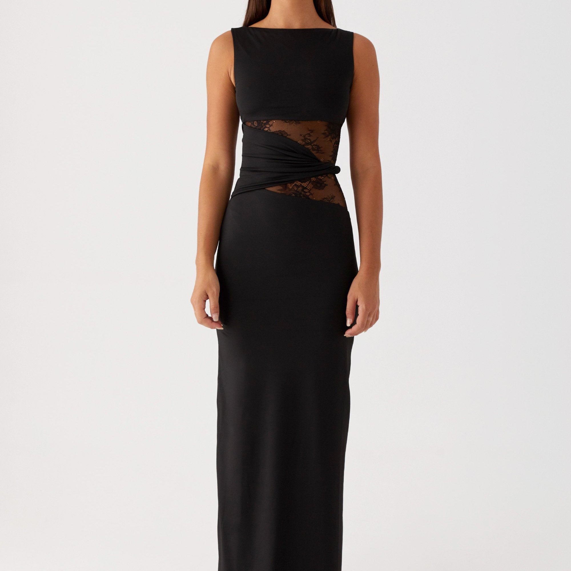 Leni - Prilegajoča maksikleka z diskretnimi izrezi in čipkami