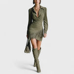 Rhea - Elegantna suknjiča iz semiša z resicami