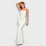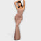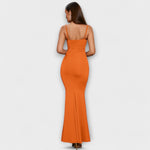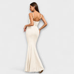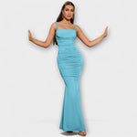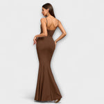 Predstavljamo vam našo osupljivo obleko brez hrbta , popolno za izstopanje vsakega na dogodku. Ta obleka se obnaša z elegantnim enobarvnim vzorcem in obliko ribje repa , ki poudari vašo silhueto.
