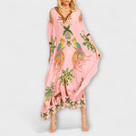 Uživajte v tropskih vetrovih z našo edinstveno obleko z asimetričnimi rameni , okrašeno s čudovito potiskom kokosovega drevesa. Ohlapen kroj in asimetrična zasnova ramen zagotavljata vrhunsko udobje, kar jo naredi popolno za sproščene izhode ali počitnice na plaži.