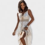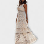 Občutite brezskrbno boemsko eleganco z našo maksimalno obleko Paige . Popolna za vsako priložnost, Paige združuje laskavo A-linijo s čudovitimi čipkastimi detajli, kar vam daje tako eleganco kot sproščen videz.