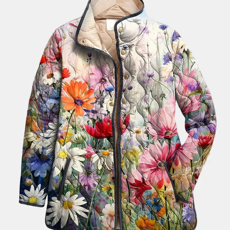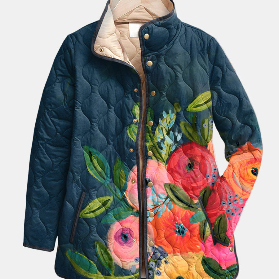 Amaya | Vintage cvetlični tiskani prešiti plašč