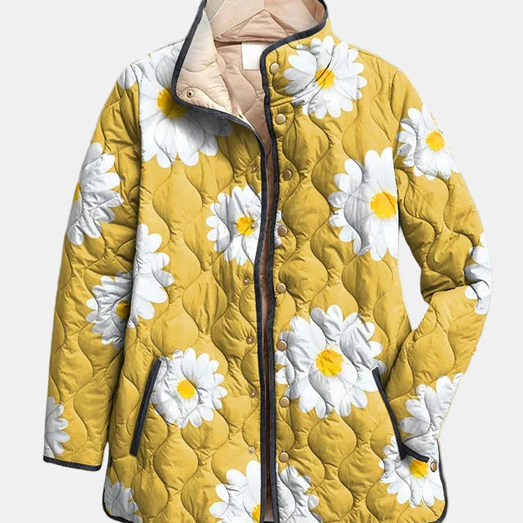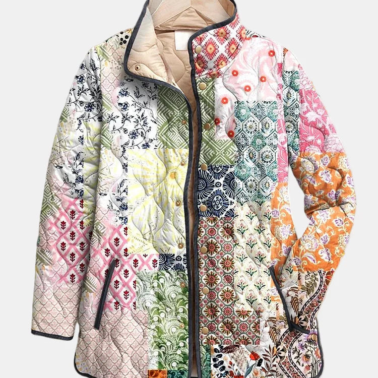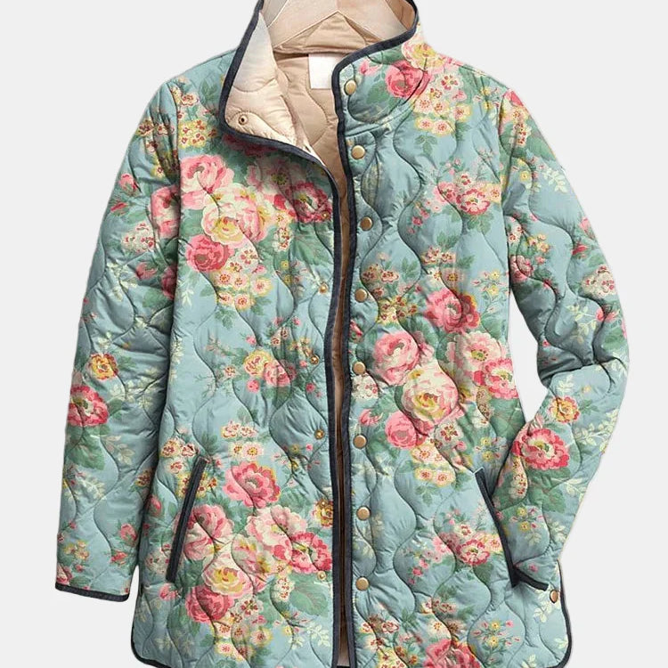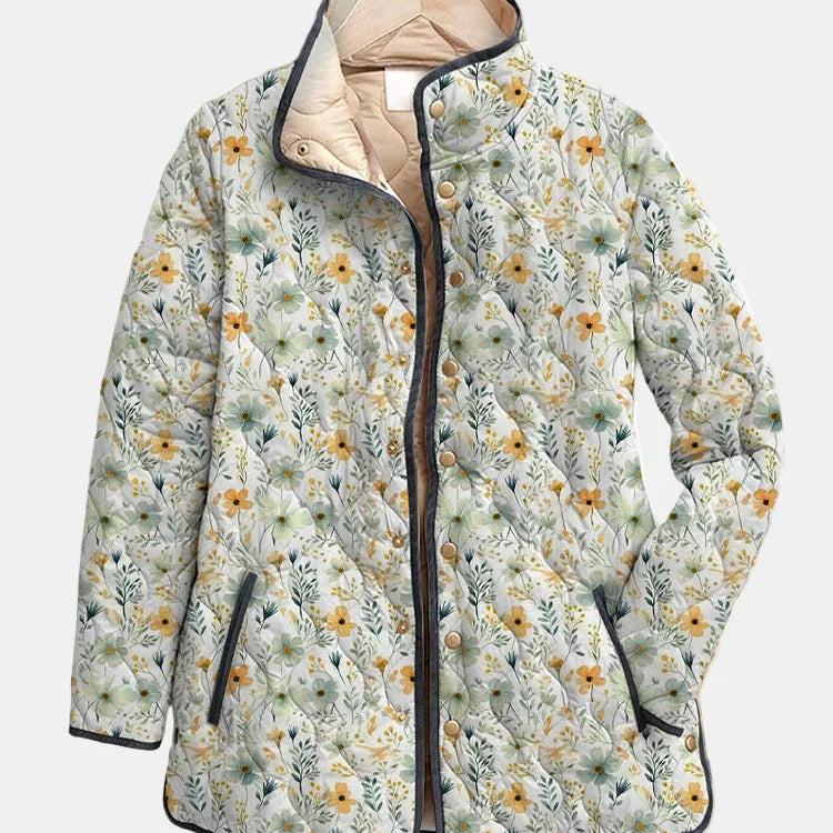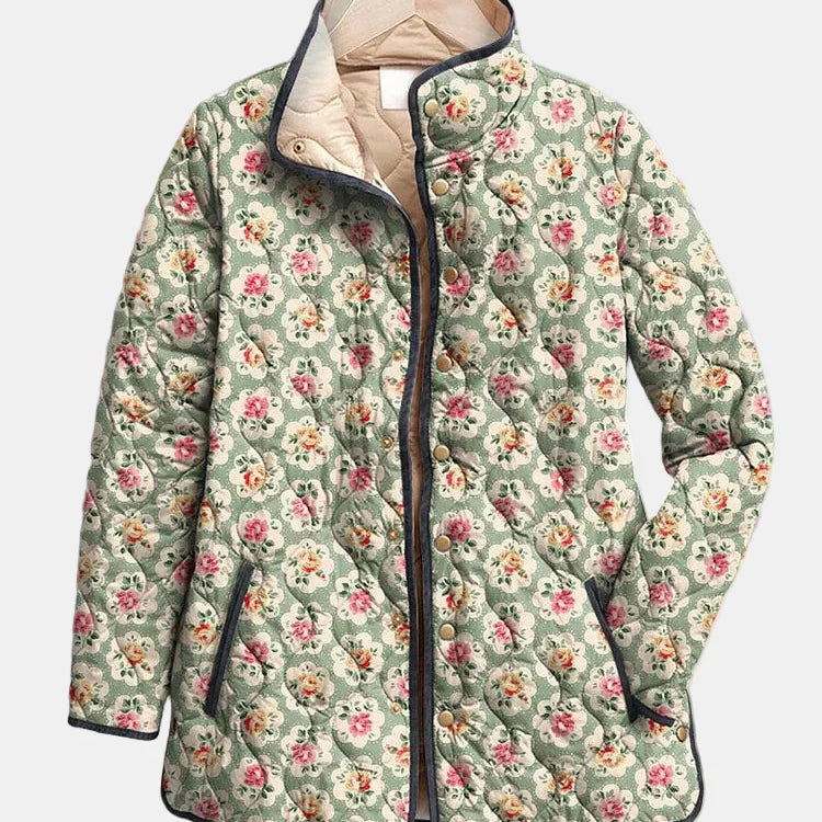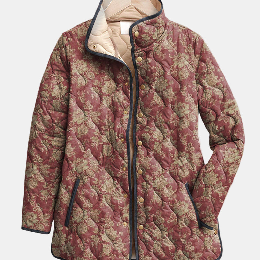 Carys | Retro cvetlični vzorčasti prešiti plašč