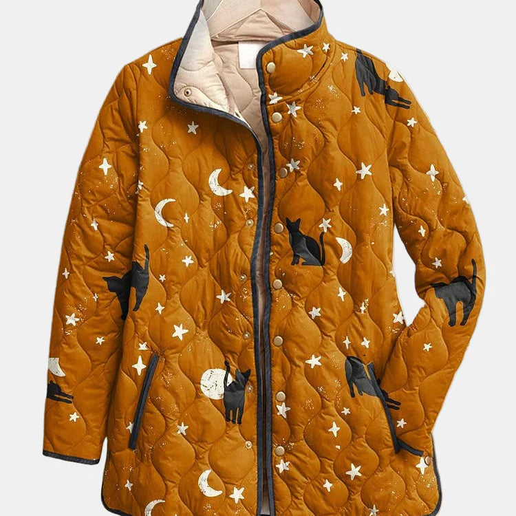 Eira | Priložnostna črna mačka Halloween print prešita jakna