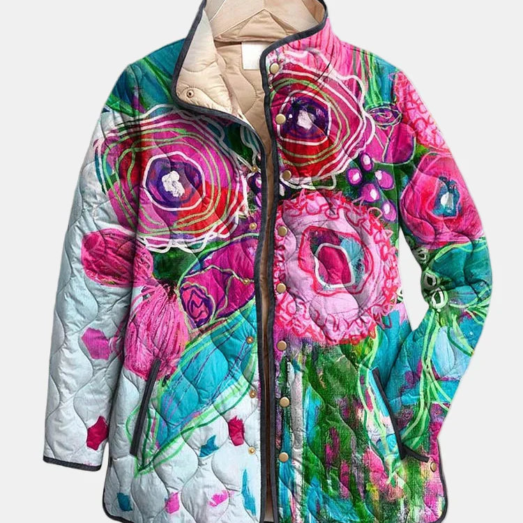 Aveline | Vintage Cvetlični Umjetniški Natis Quilted Jakna