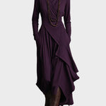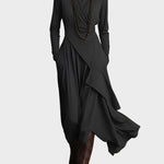 Ta maksi obleka združuje prefinjen visok ovratnik, mehko padajoče plasti in ženstveno silhueto, ki se giblje z vami. Asimetrični kroj ustvari unikaten, umetniški videz, medtem ko udoben material zagotavlja prijetno nošenje čez ves dan. Popolna izbira za posebne priložnosti ali za trenutke, ki jih želite izstopiti brez truda.